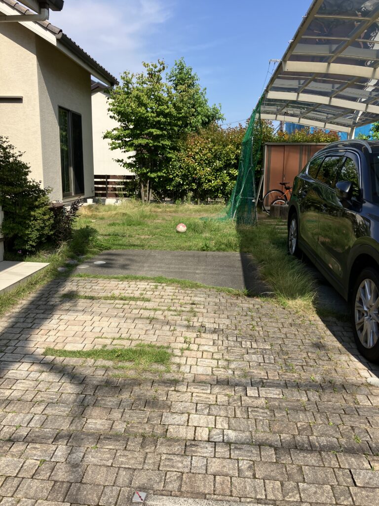 もともとタイル舗装と土間コンクリート・天然芝の駐車場スペースだったところを