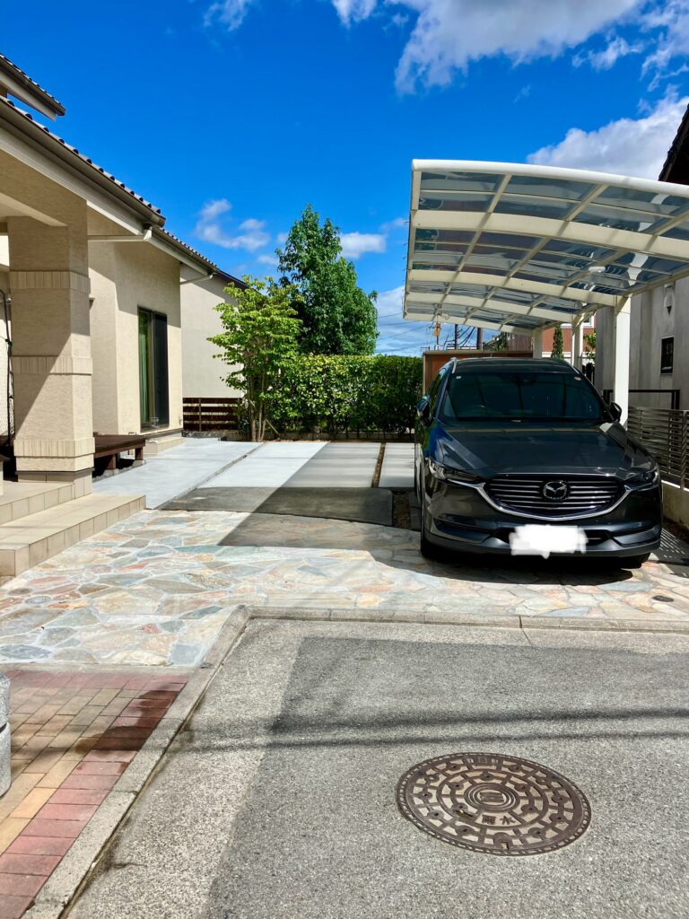乱形舗装と土間コンクリートの駐車場