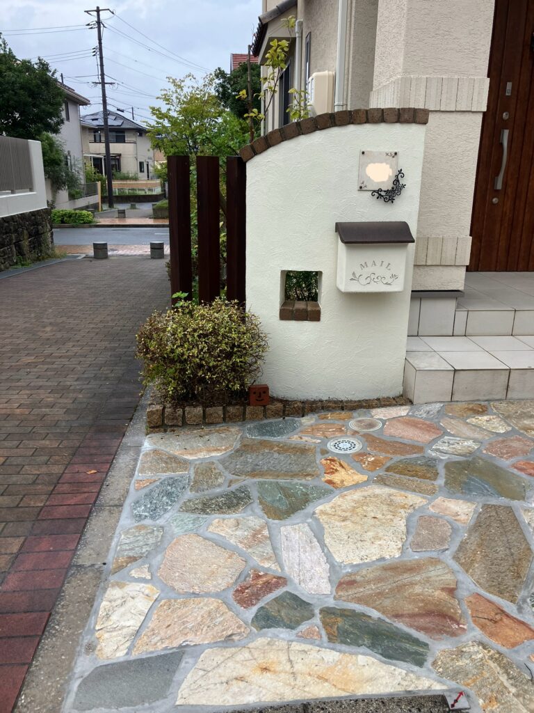 タイル舗装されていた部分は新たに乱形舗装にして