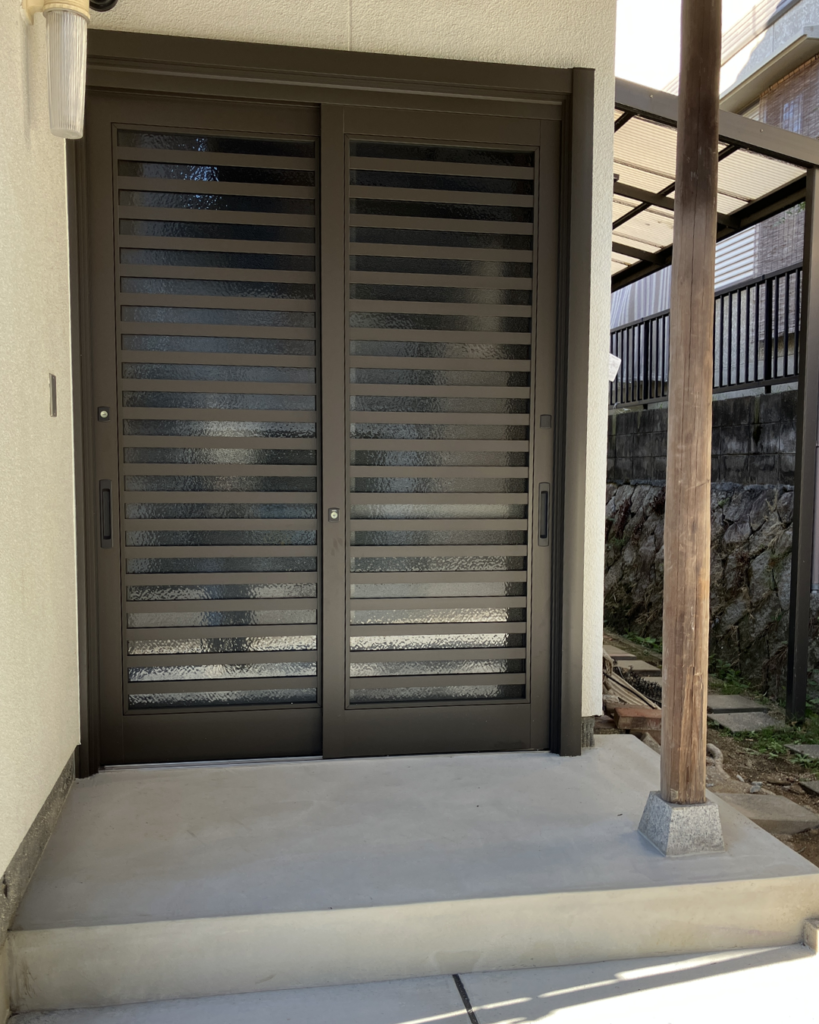 玄関引き戸も交換。玄関ポーチもコンクリート打放しでスッキリな印象になりました。