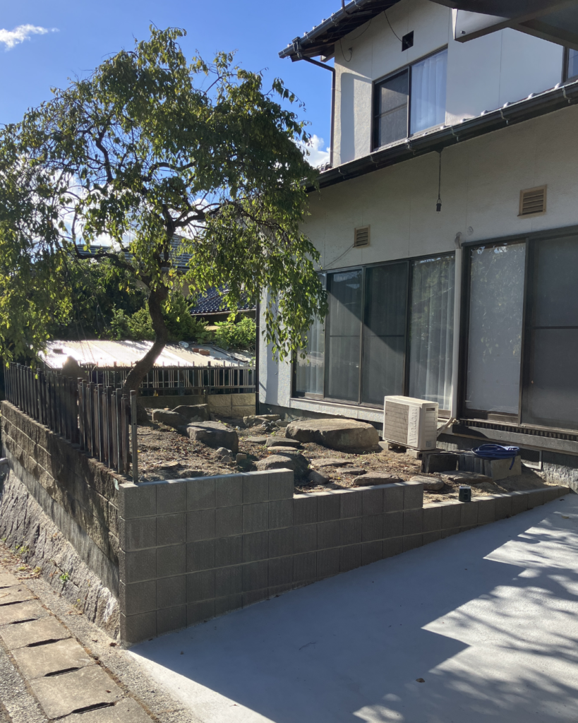 お手入れが大変だったお庭はシンボルツリーのウメノキと景石のみ残し